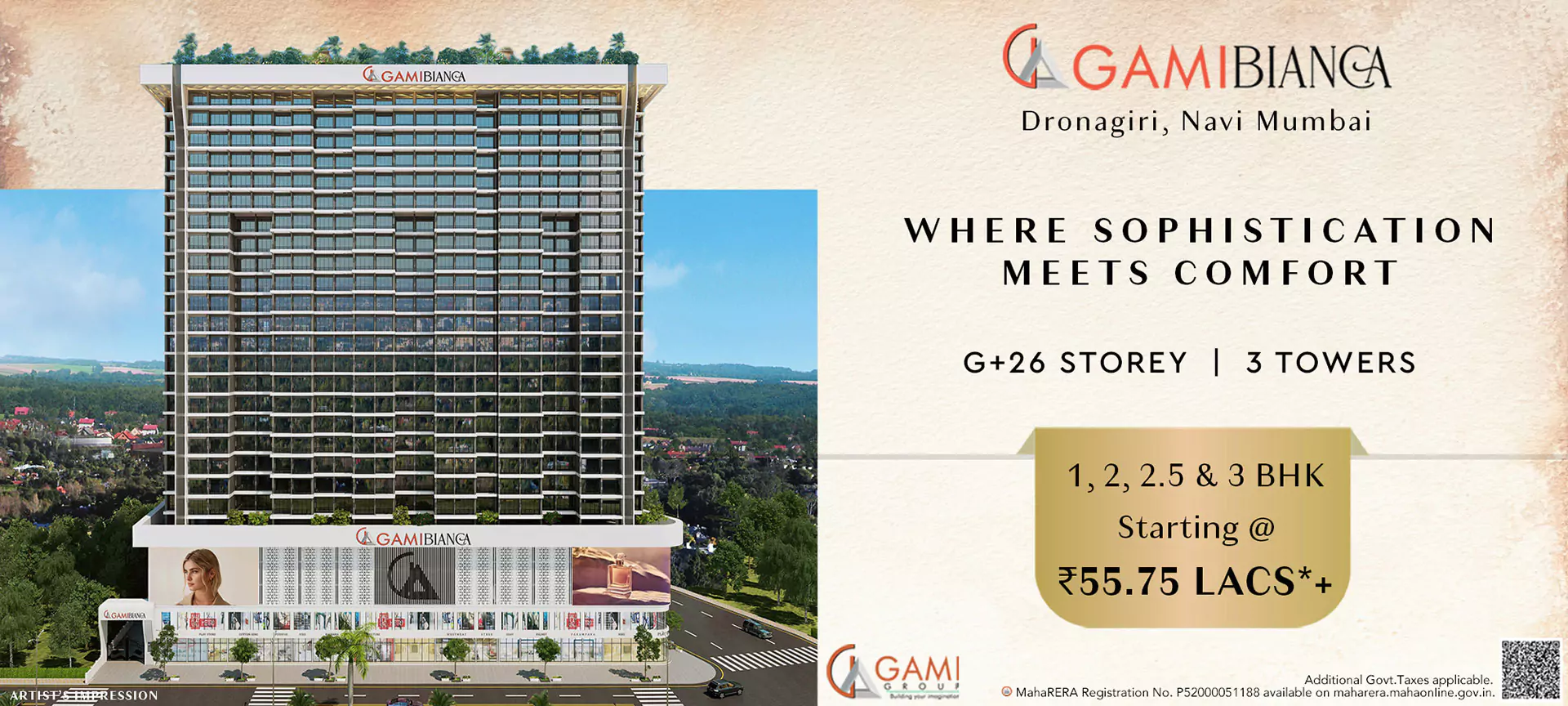 Gami Group expressly disclaims all warranties of any kind whether express or implied including the warranties of merchantability and fitness for a particular purpose. Gami Group reserves the right, without any obligation whatsoever; to review, correct, remove or modify all or any content submitted herein. All plans, drawings, amenities, features, specifications other information etc., mentioned herein are indicative and/or suggestive of the kind of development proposed to be undertaken and are subject to the approval of the respective competent authority. All plans, renders and models displayed herein are artist's perceptions and must not be considered as actual buildings, flats, apartments, etc.